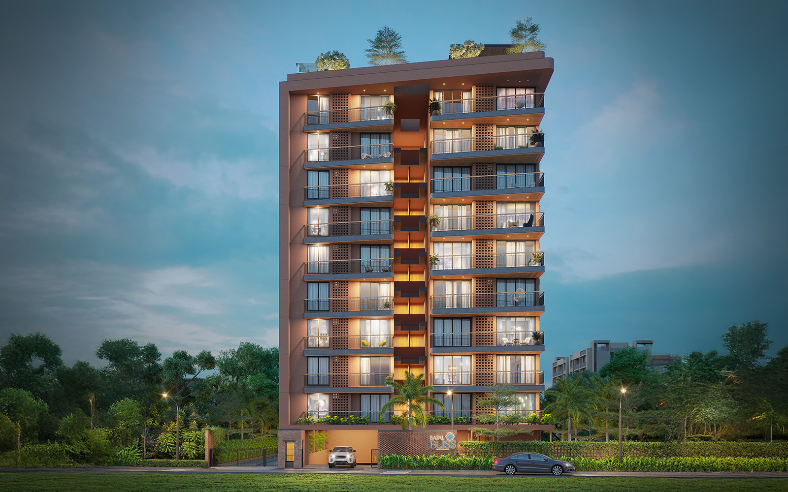 Safal Bliss is a unique development that re-frames traditional notions of luxury living in PDPU, Gandhinagar. With 11’-0” Feet Floor Height, modern design, premium amenities, and an enriching lifestyle, Safal Bliss is the perfect choice for those seeking a luxurious lifestyle. Unique design having a separate entry servant room with a washroom. High-end specifications with top-notch brand, i.e. C.P. & Sanitaryware-Hansgrohe, Tiles-Kajaria,